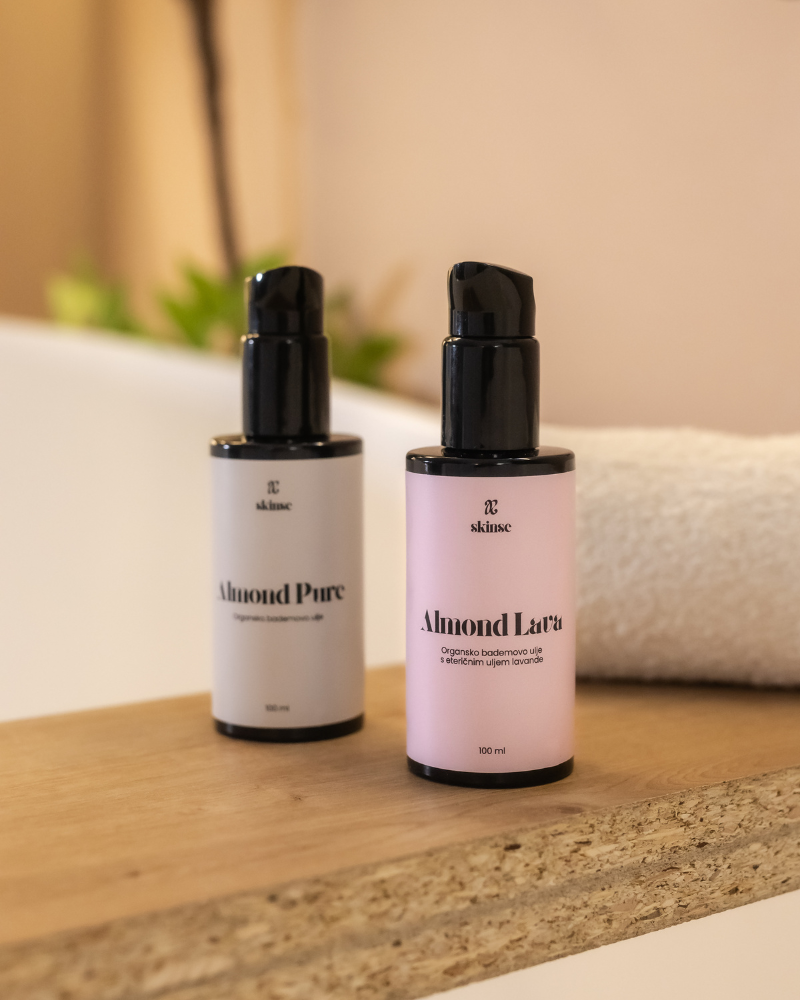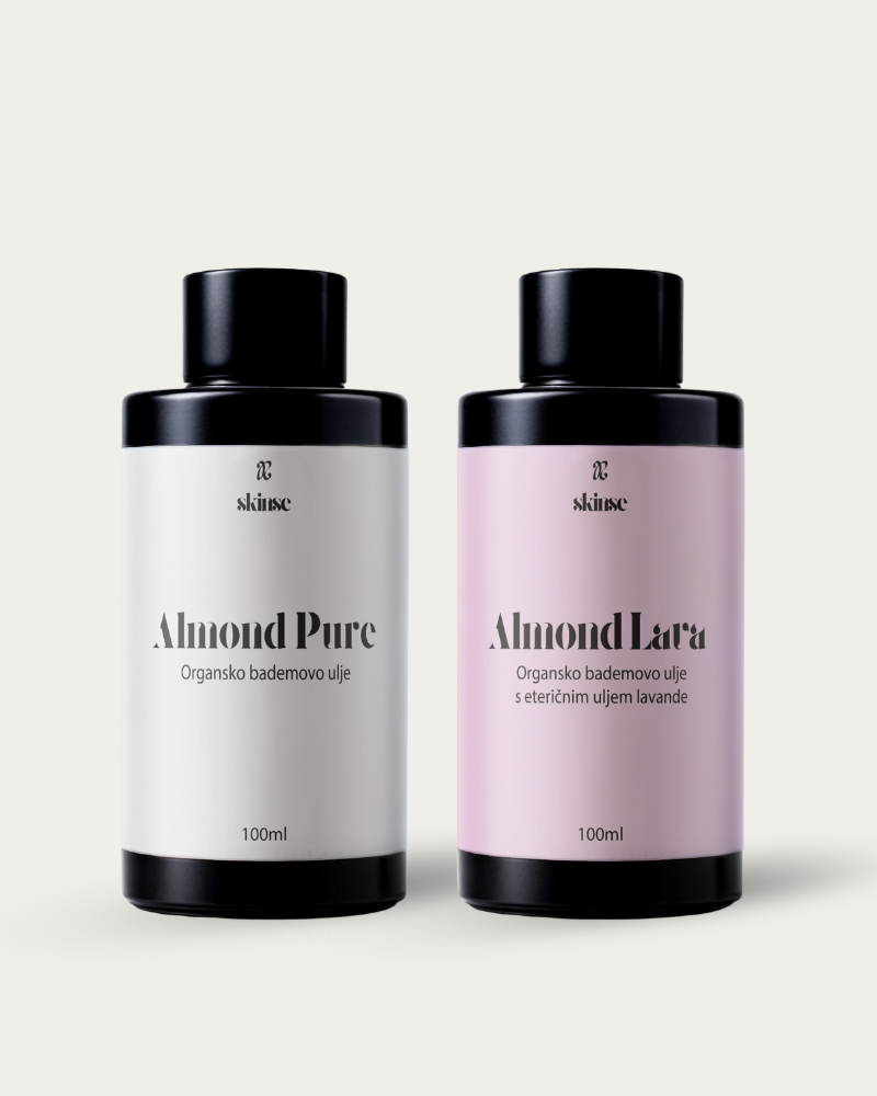 - Almond Pure, 100 ml – organsko hladno prešano bademovo ulje. Bez mirisa, lagano i savršeno za osjetljivu kožu, lice i njegu kože u trudnoći.